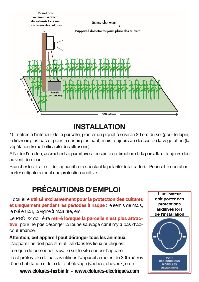 Pour une efficacité maximale , mettre deux effaroucheurs l'un en face de l'autre , 200 m max