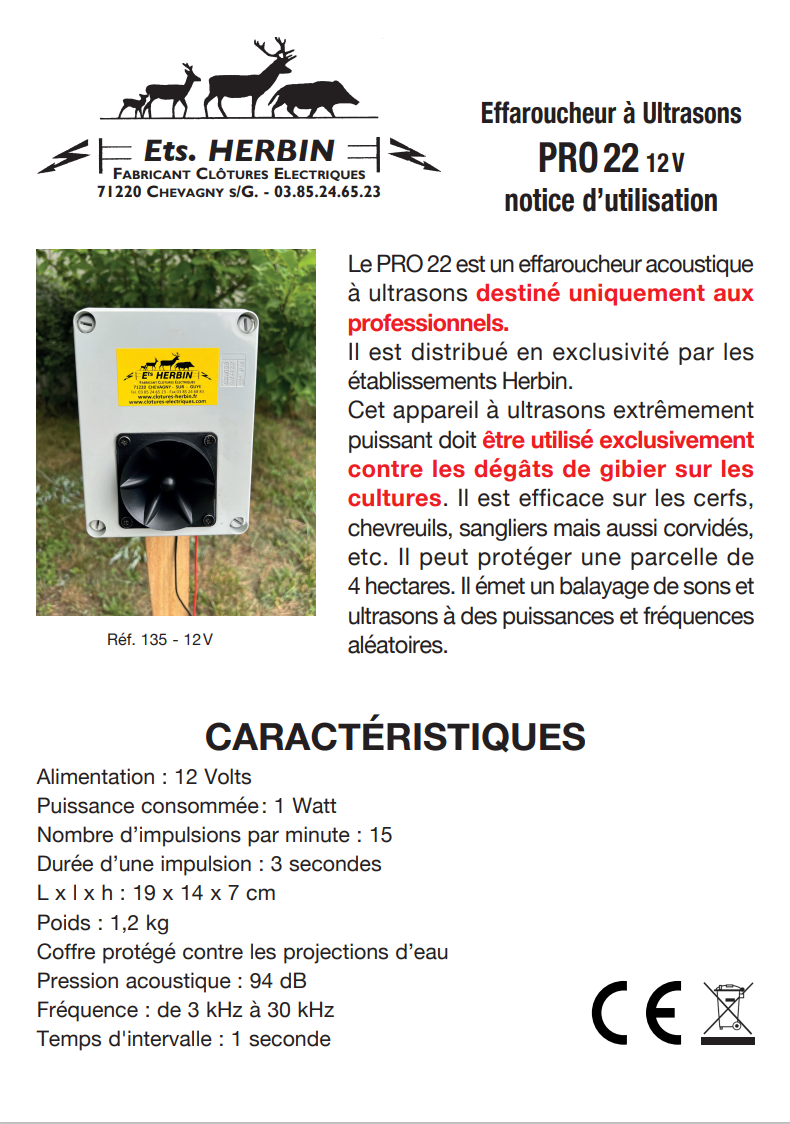 Effaroucheur acoustique ultrasons destiné uniquement aux professionnels.